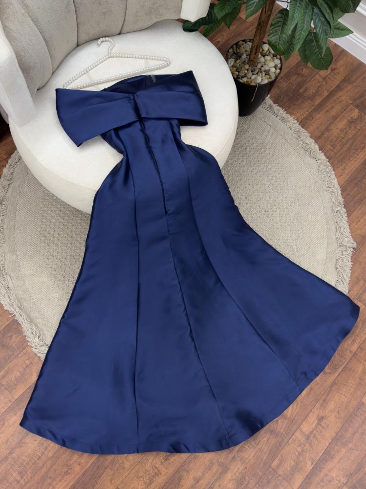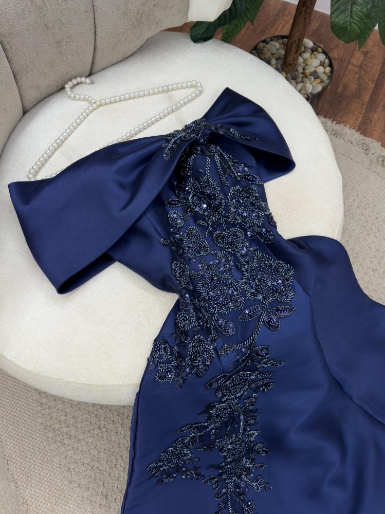 فستان سهره انيق باللون الكحلي الغامق خامه ميكادو