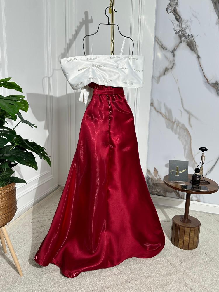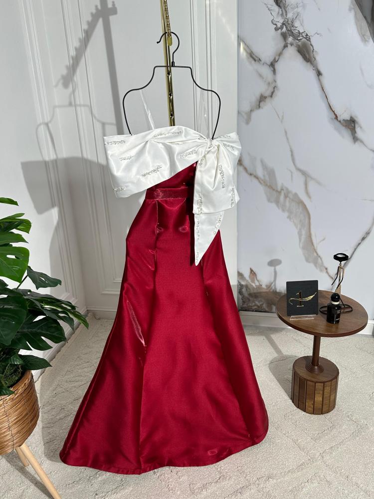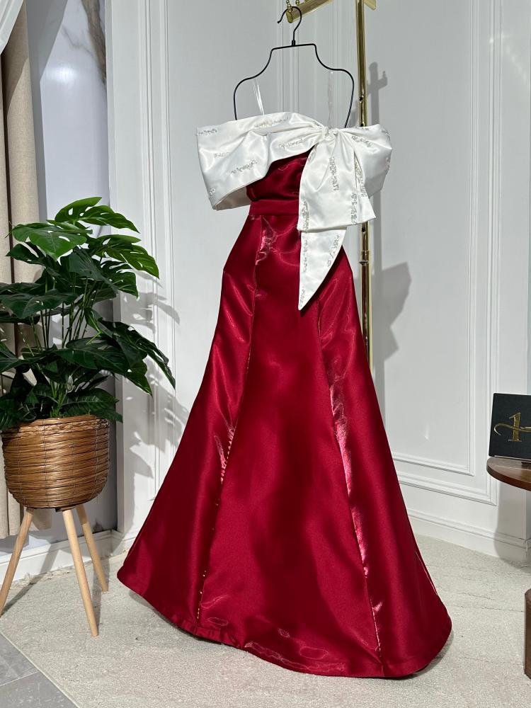فستان انيق بلونين الرائعه والفاتنه الاحمر والكحلي بخامه ميكادو مع تفته