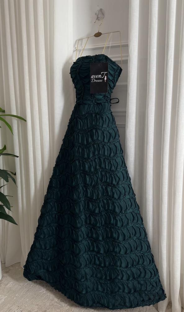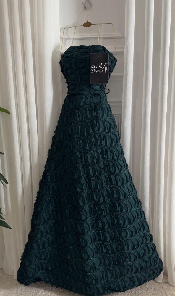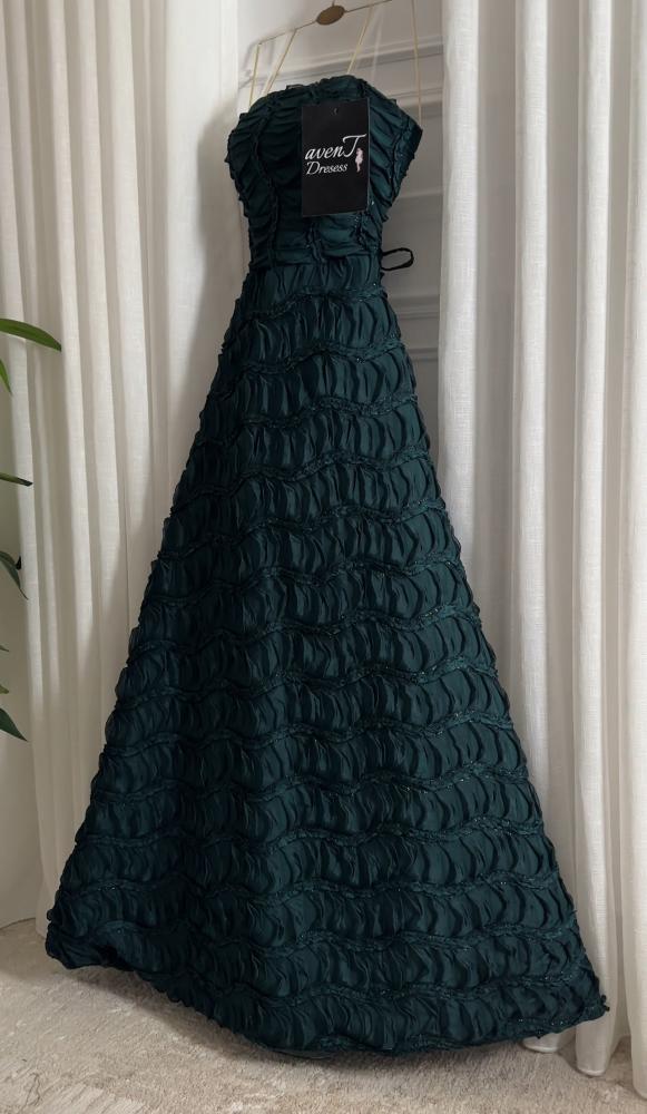 يأتي هذا الفستان بلونه الزيتي العميق ليمنحك حضوراً مهيباً وساحراً، مصمم من خامة كريشه فاخرة تضيف لمسة ناعمة وانسيابية راقية مع بطانة دبل لتعزيز القوام وإضفاء فخامة مضاعفة.