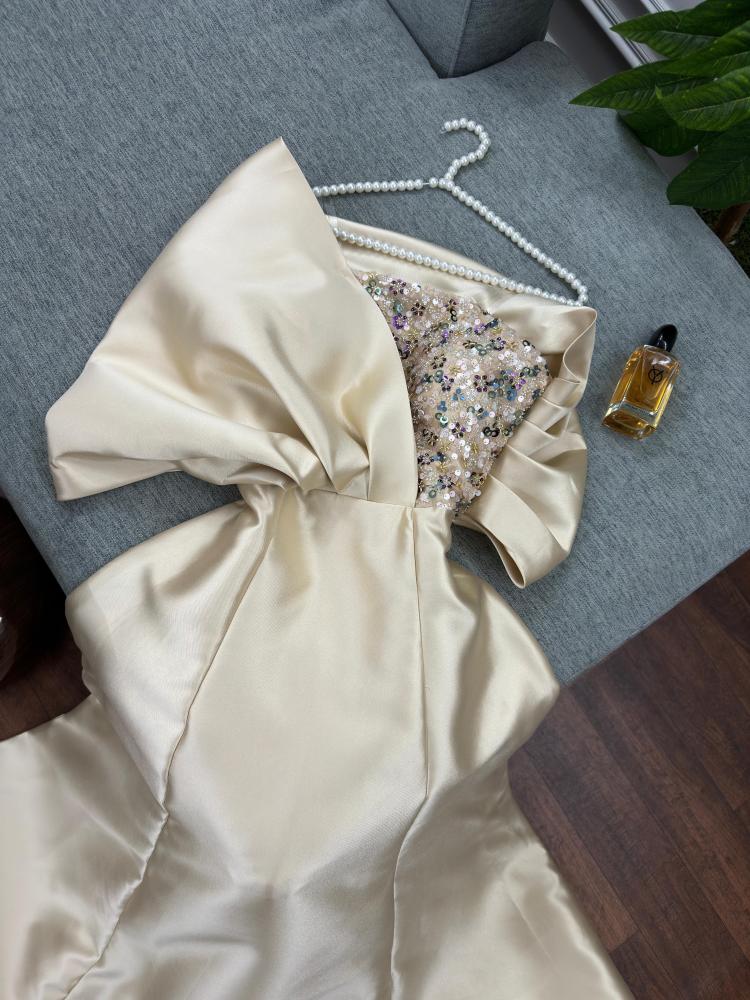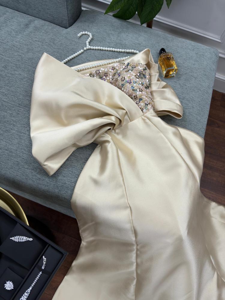 فستان ميكادو خرز شقل يدوي لون بيج جميل جدا