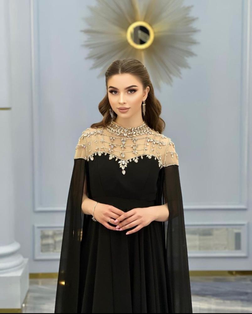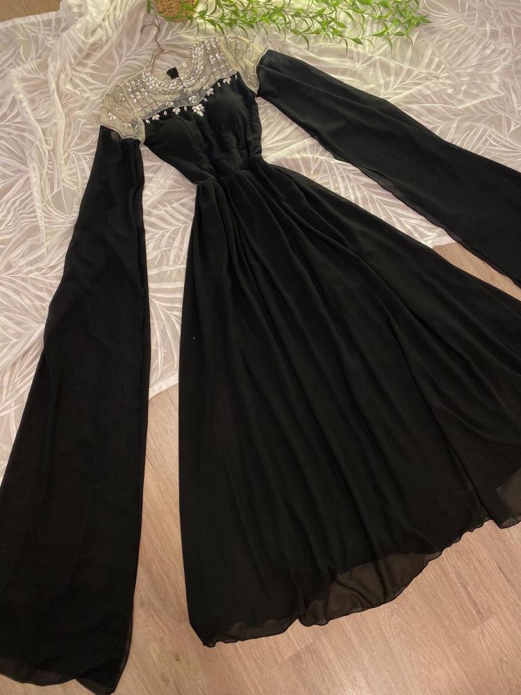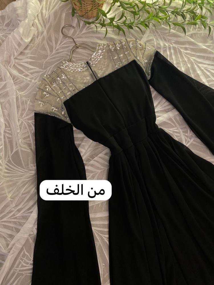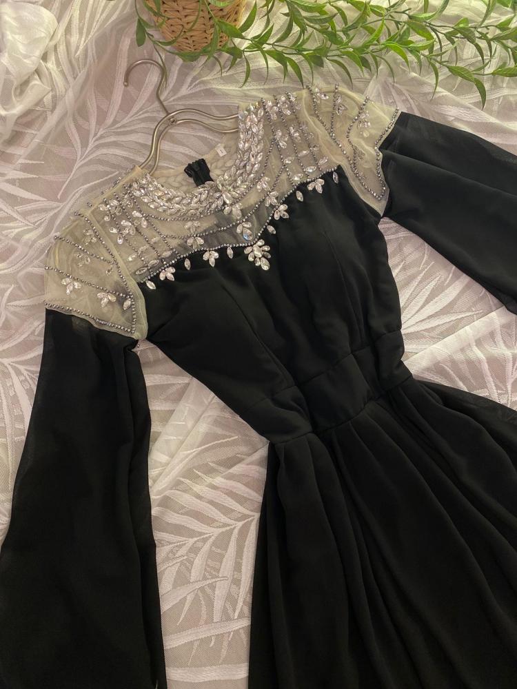 فستان اسود انيق خامه شيفون مع كريستال شقل يدوي