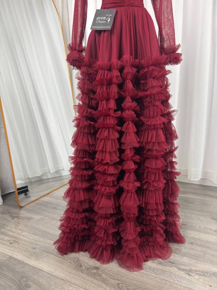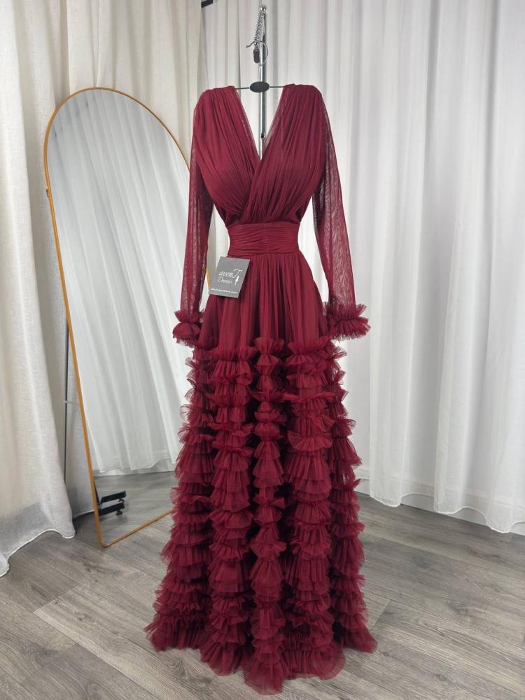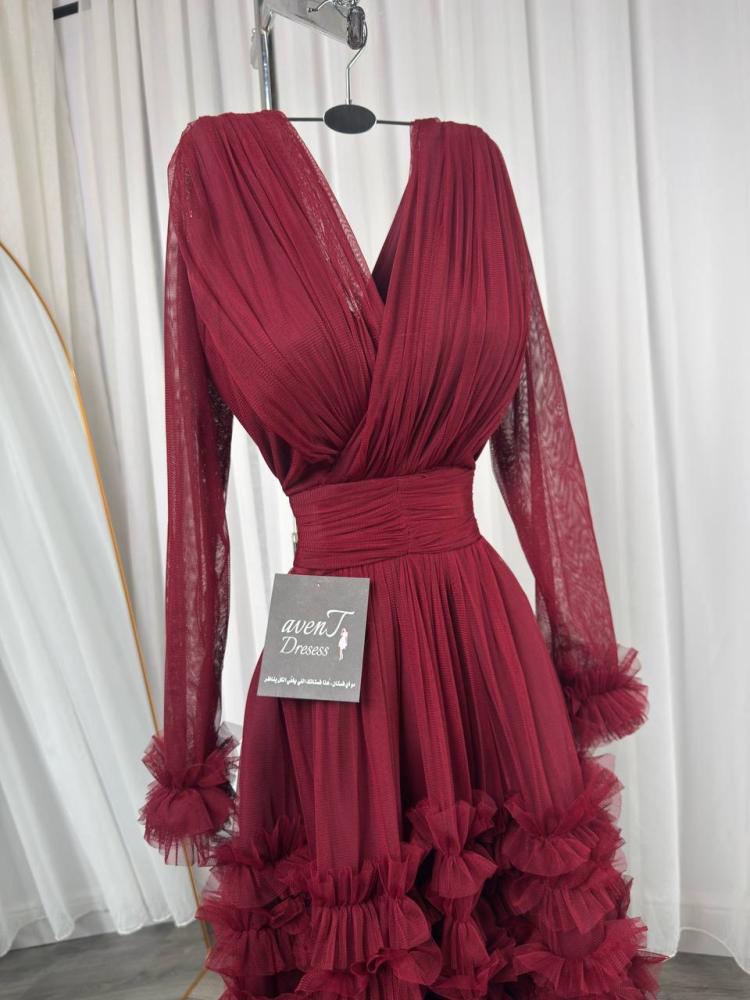 الخامه : تُل اصلي ناعم مع اكمام طويل وكسرات دقيقه