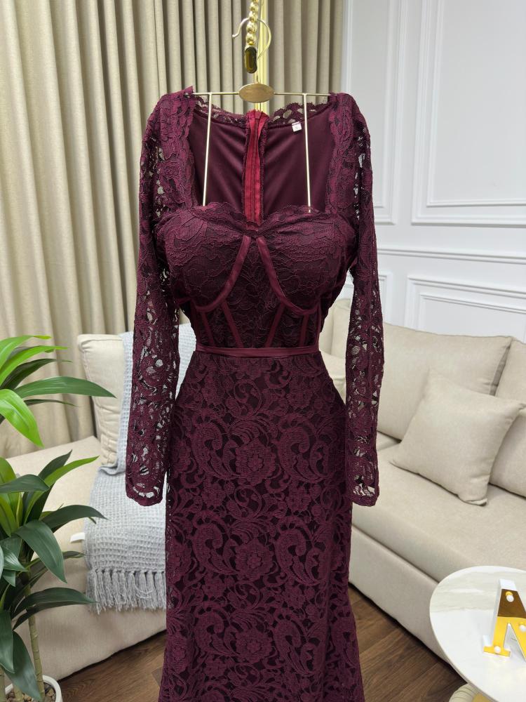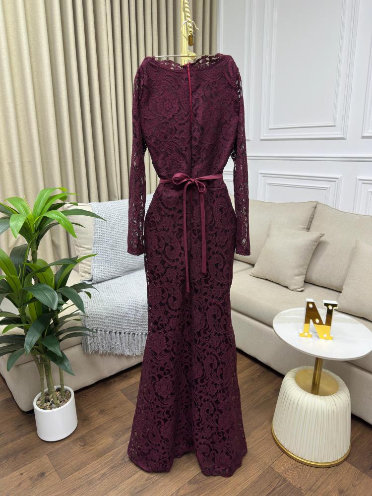 فستان انيق لون برغندي بخامه دانتيل♥️✨